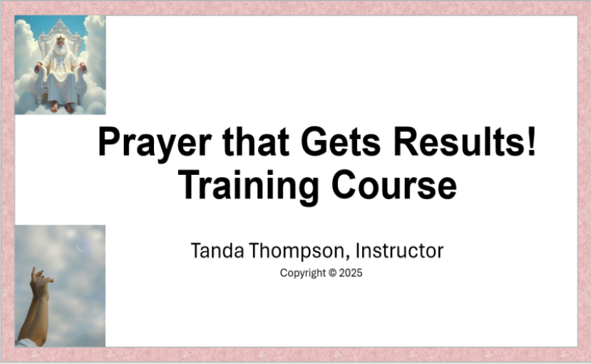 Tanda Thompson is a seasoned Prayer Intercessor, Author, and Bible Teacher with over 40 years of experience. Having witnessed countless miracles—including healing, breakthrough, and divine provision—she empowers others to pray with faith and confidence. Despite personal battles with cancer, Tanda has authored 11 books and developed powerful curricula focused on faith and answered prayer. She’s passionate about helping you walk the proven path to answered prayer.